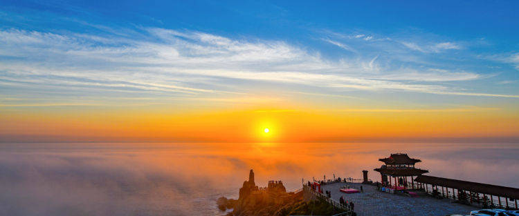 荣成的海,胜在“野”。最典型的是成山头,这里是中国陆地最早迎接日出的地方之一。站在山海交界的尽头,脚下是断崖,眼前是常年被风浪雕刻的海面,浪高时可达数米。